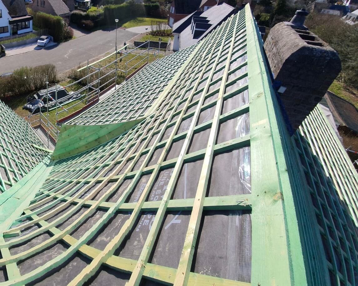 Travaux de toiture en tuiles et ardoises, adaptés à tous types de bâtiments et d’inclinaisons.